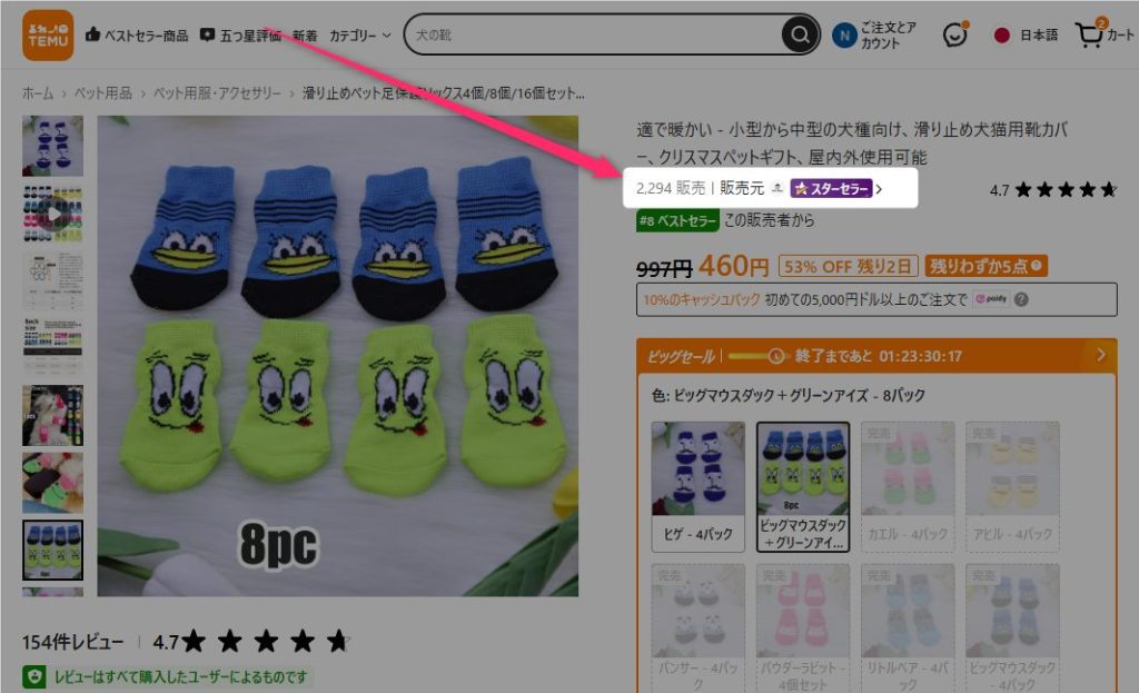 ①の販売数が多くてスターセラーと書いてある販売者を選ぶのがコツです。