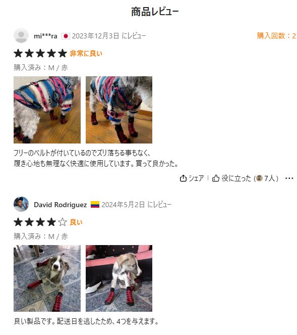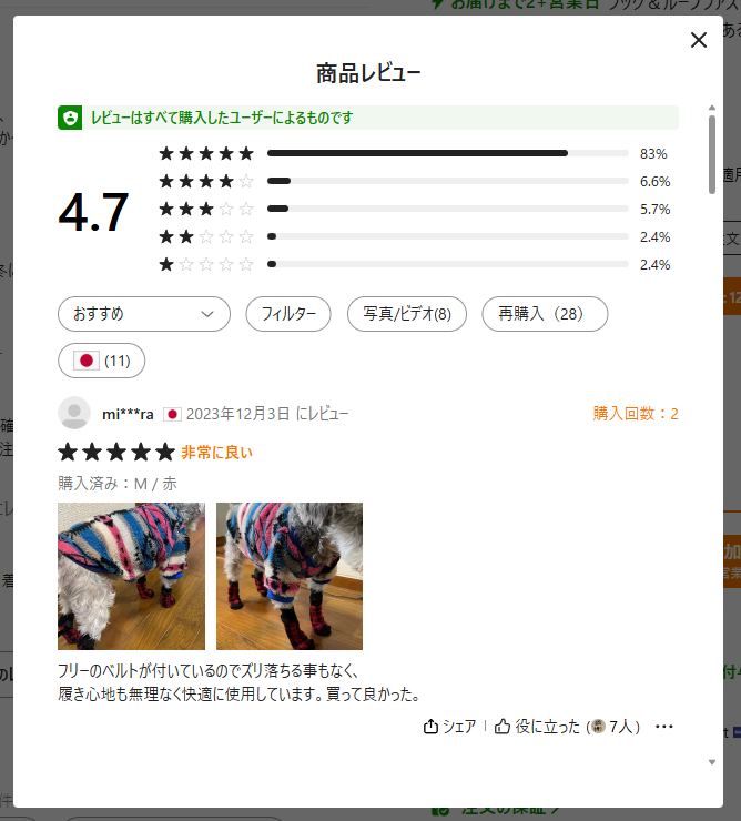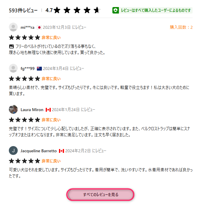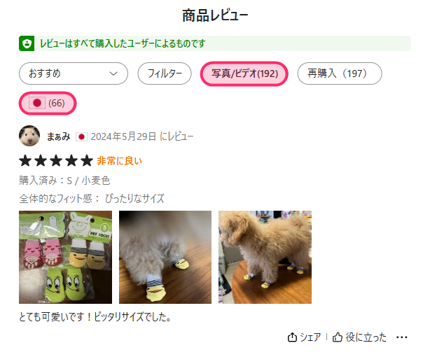 写真/ビデオ付きのレビューや日本からのレビューを表示させる機能もあって便利です。