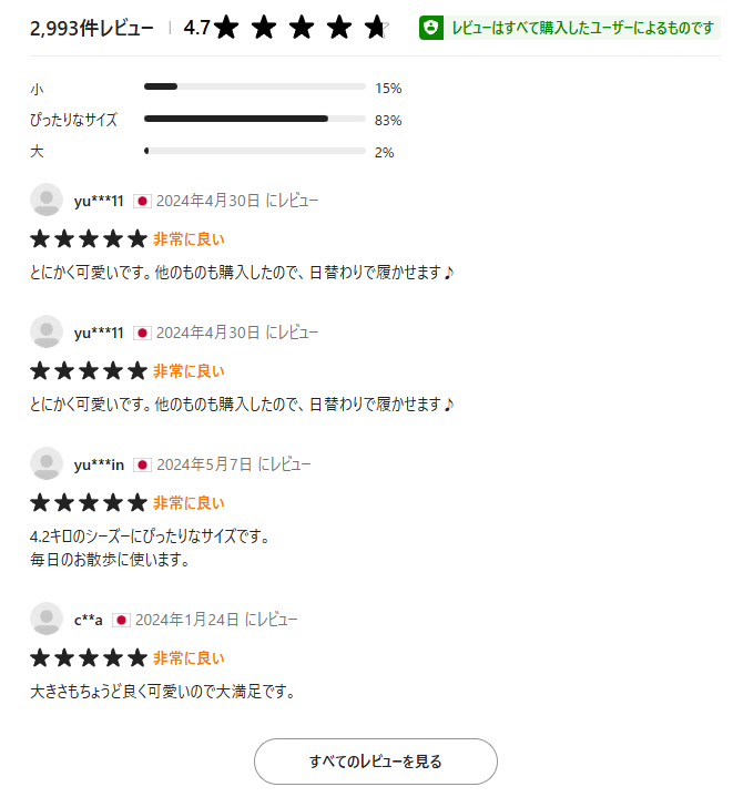 気になる場合は すべてのレビューを見るボタンをクリックしてチェックしてみましょう。