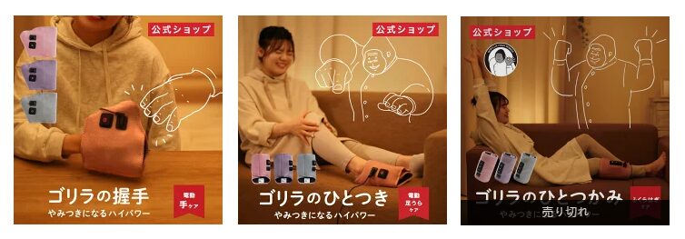 また、ふくらはぎや足裏、掌を突起とエアーでギュッと刺激してくれる「ゴリラ系」と呼ばれるタイプのマッサージャーも、ビッグカメラでテストしましたが、「思ったほどの強さではないな」と判断。また、高齢の両親にとっては「ちょっと刺激が強すぎるだろうな」と感じて購入を見送りました。